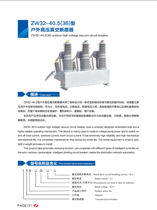 | ZW32-40.5(36)型戶外高壓真空斷路器 | |